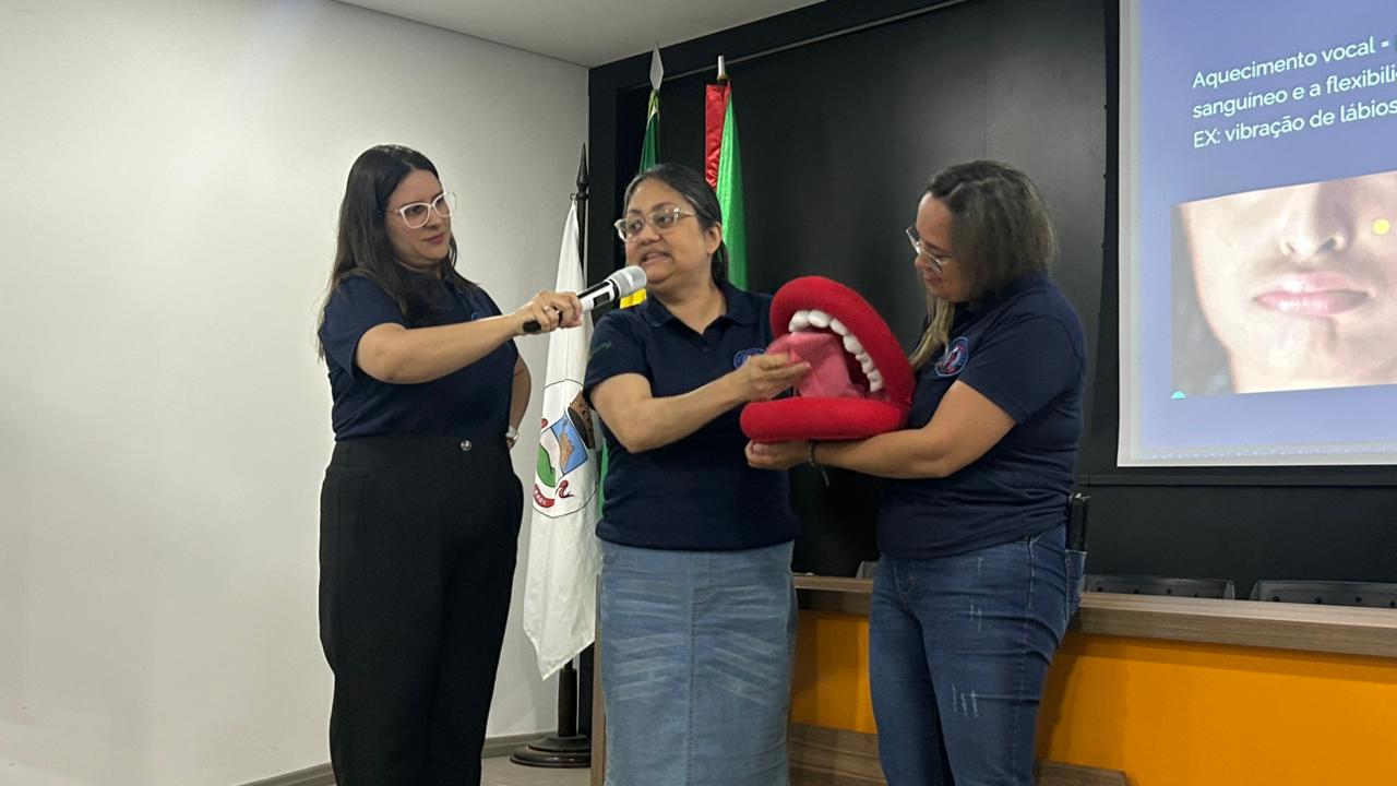 Acadêmicos do curso, supervisionados pela professora Ana Carolina Albornoz, conduziram a atividade apresentando conteúdos sobre higiene vocal, práticas de aquecimento e desaquecimento, fatores de risco e estratégias para preservação da voz no cotidiano docente. “O profissional da voz vai muito além do cantor. Os professores representam a maior parte desse grupo e enfrentam diariamente desafios que impactam desempenho, saúde e bem-estar”, destaca a coordenadora do curso, professora Ana Constantino Sousa.